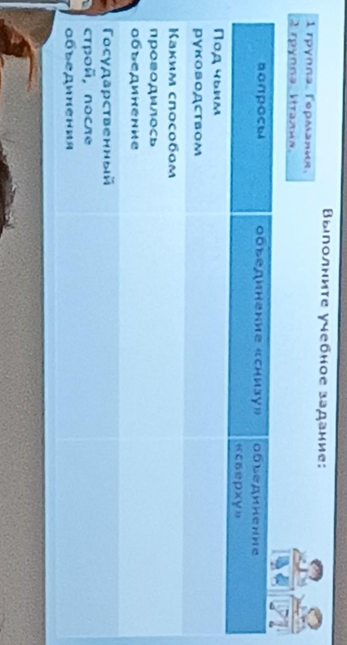 Италиа вопросы Под чьим руководством Каким способом проводилось объединение Государственный трой, после объединения объединение снизу объеди «CBOpx