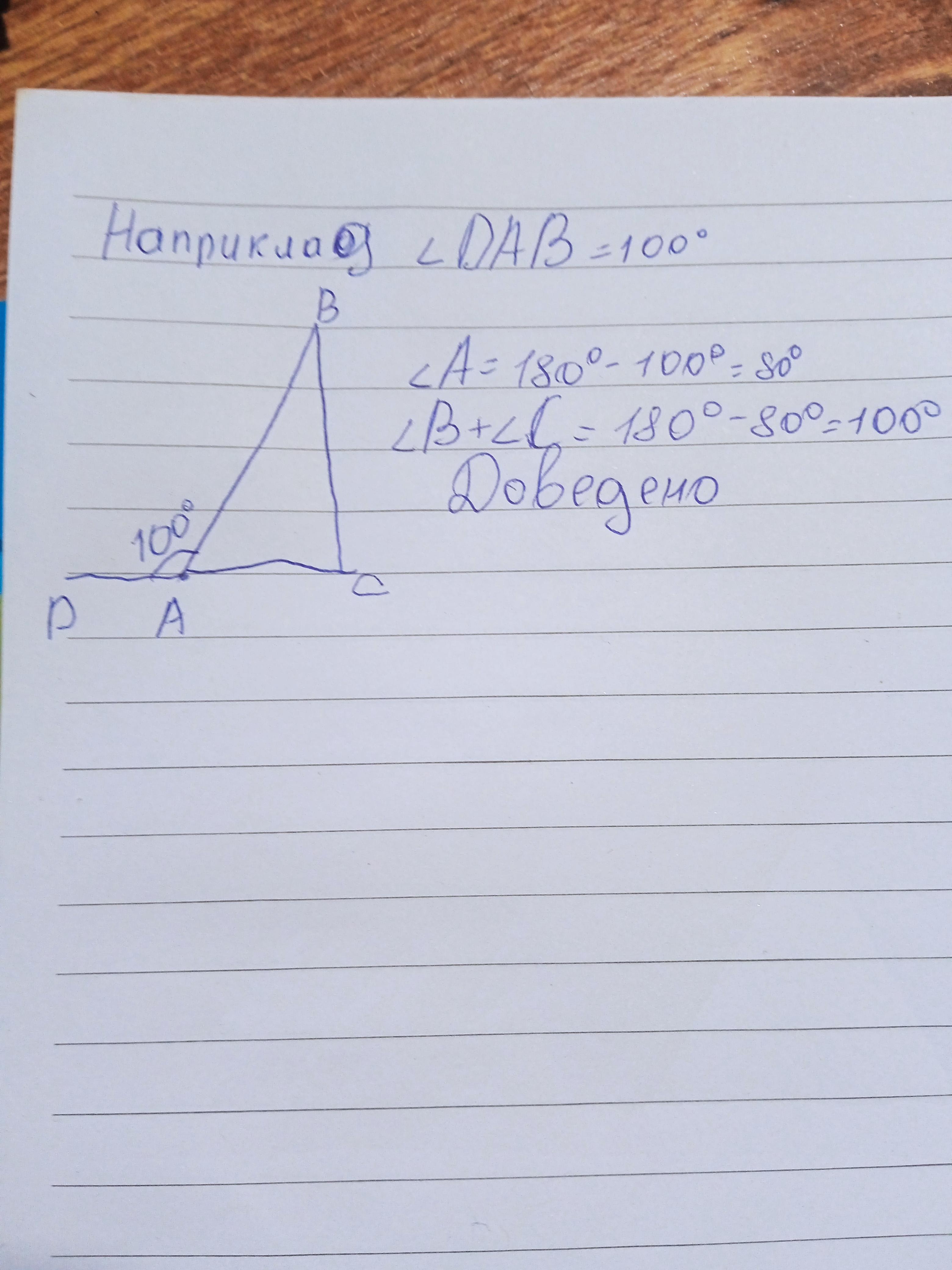 докажите теорему Сумма внешний угол треугольника равен сумме двух внутренних углов не смежных с ним постройте чертеж