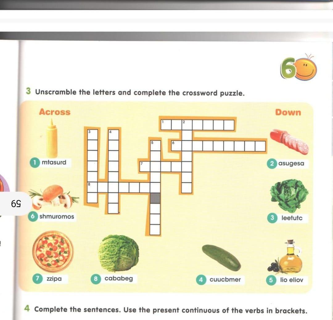 1) mustard 2)sausage 3)lettuce 4)cucumber 5)olive oil