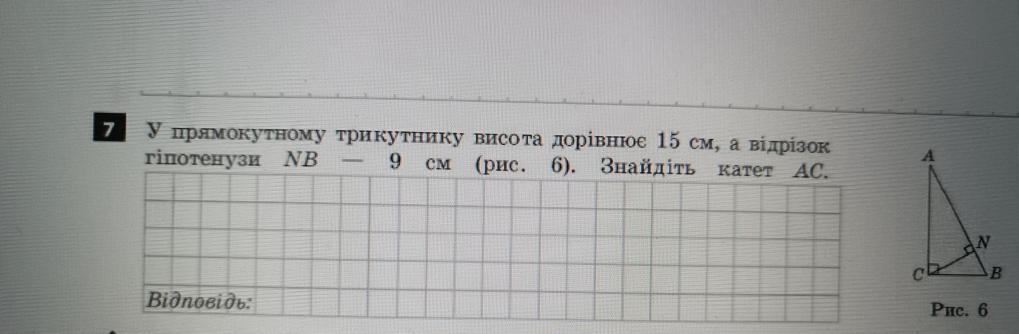 Тогда АВ = CB^2 / NB = 306/9 = 34 см