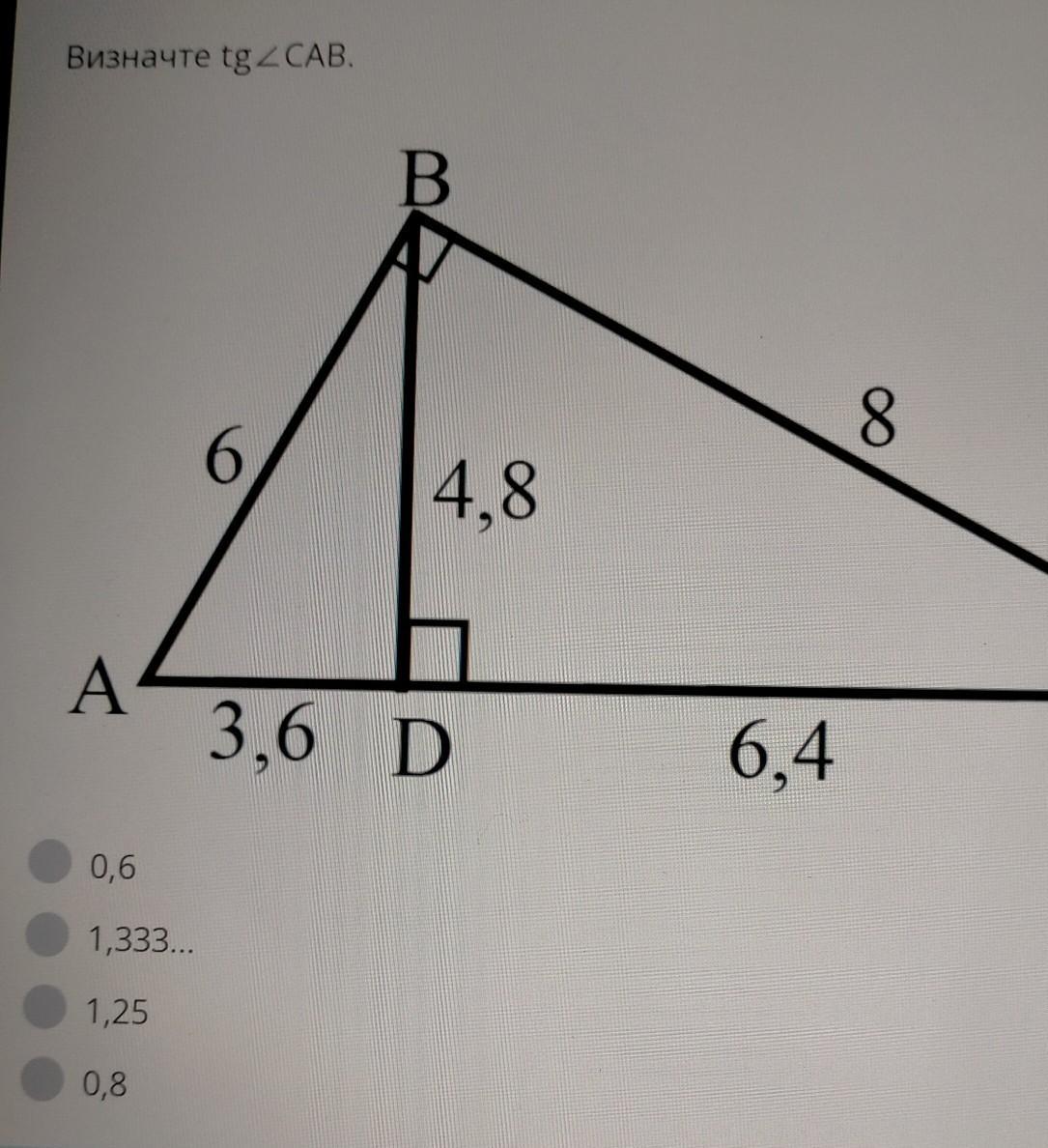 Косинус кута — це відношення прилеглого катета до гіпотенузи.