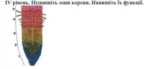 всисна зона,3. зона розтягування,2.зона поділу,1 кореневий чохлик