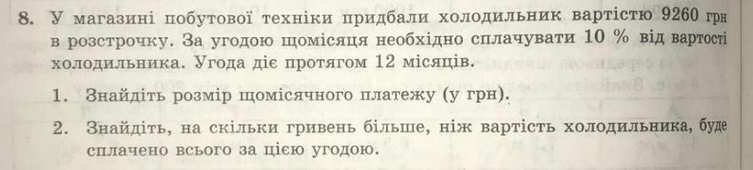 10% від 9260 це 926 грн - щомісячний платіж за договором (це відповідь на 1 запитання)