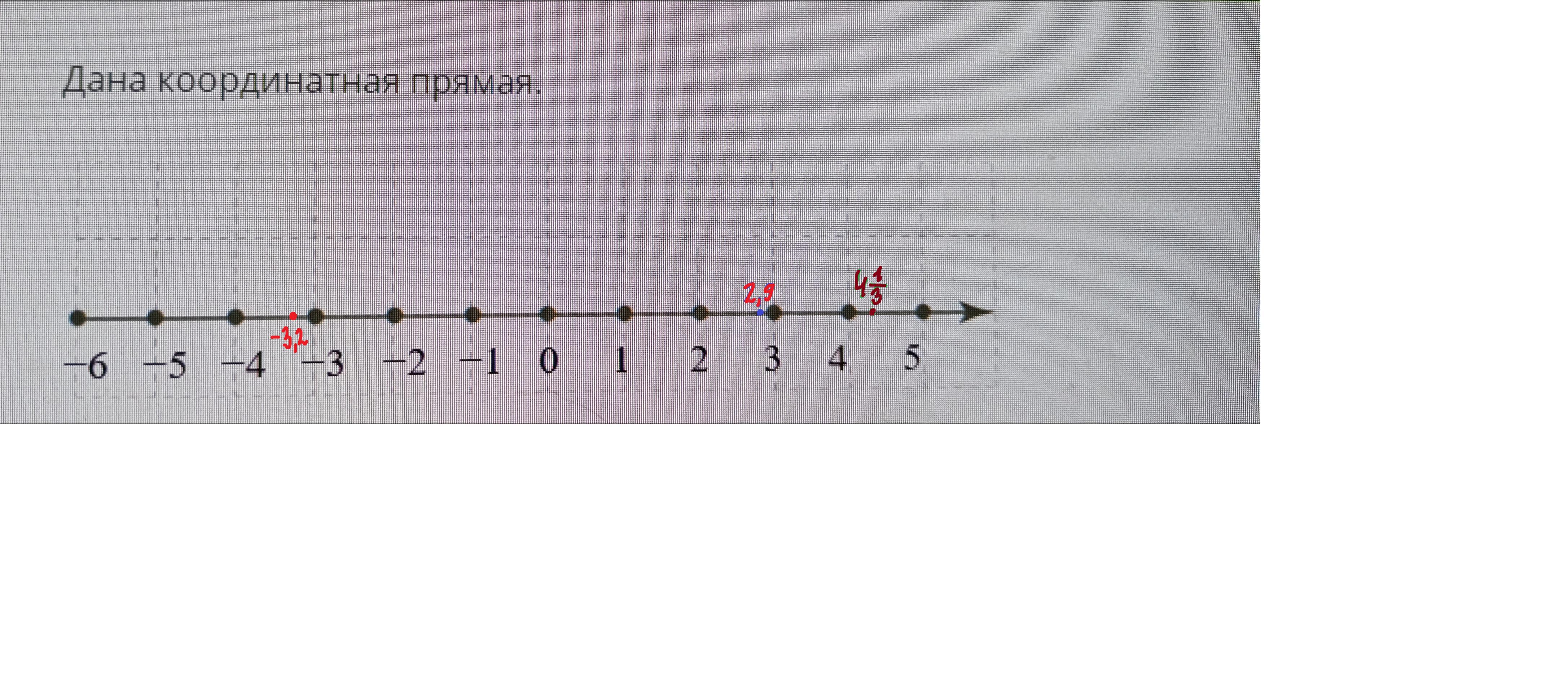 Определи, больше каких целых чисел на этой прямой будут - 3,2 ; 13/3 ; 2,9 ? Нужно указать самые близкие целые числа.