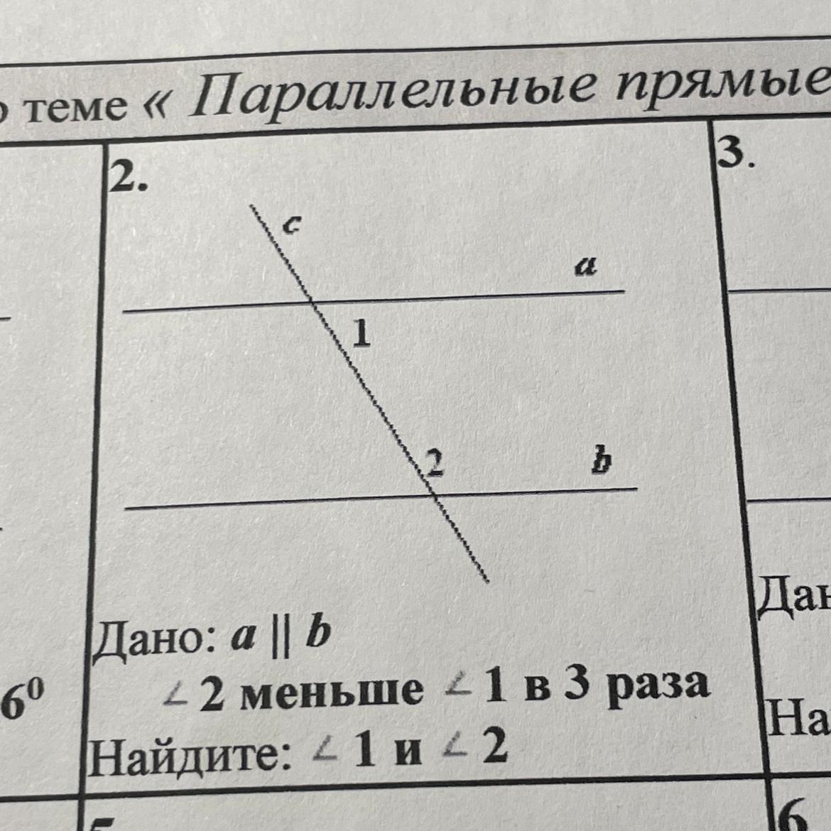 Обозначим ∠2 как Х ( ∠2 = Х ), поскольку ∠2 в три раза меньше ∠1, то ∠1 = 3Х.