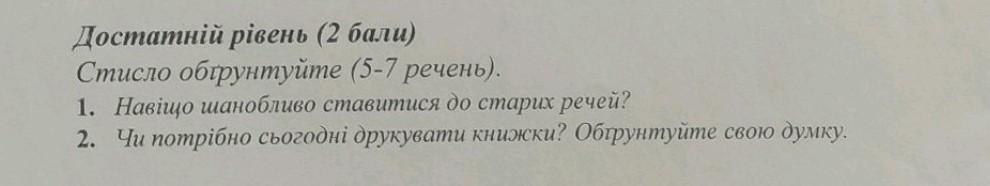 1. На думку, до старих речей потрібно шанобливо ставитися. Тому, що вони зроблені нашими предками, а тому через ці речі ми можемо дізнатися багато нового про ті часи. Як жили люди і чим користувалися. Також це пам'ять про тих, хто дав нам таке чудове майбутнє. Зараз у нас багато технологій і різних можливостей. Ми повинні пам'ятати те з чого все починалось. Тому будьте обережними з цими речами, деякі з них дуже цінні.