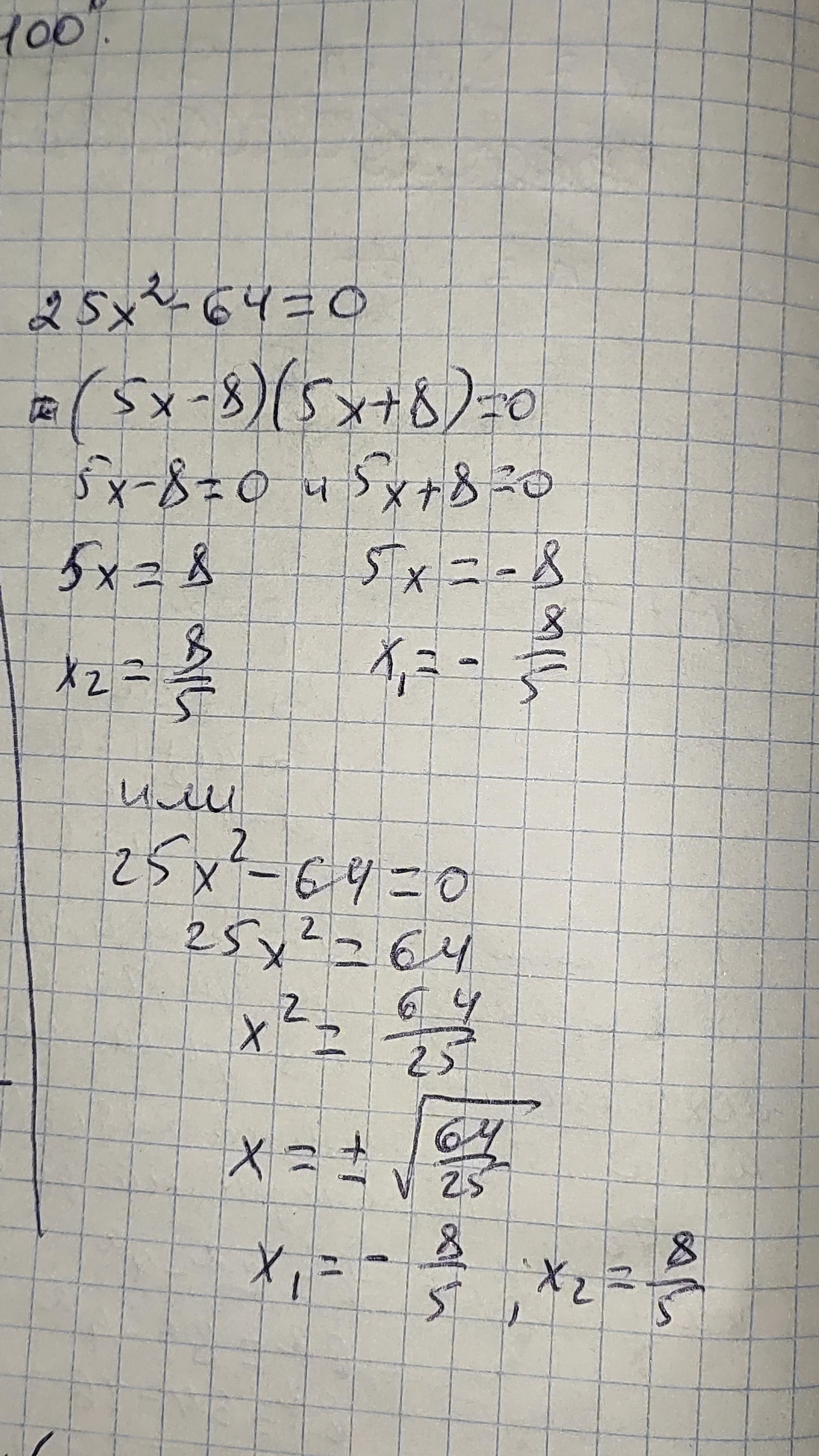 25x²-64=0