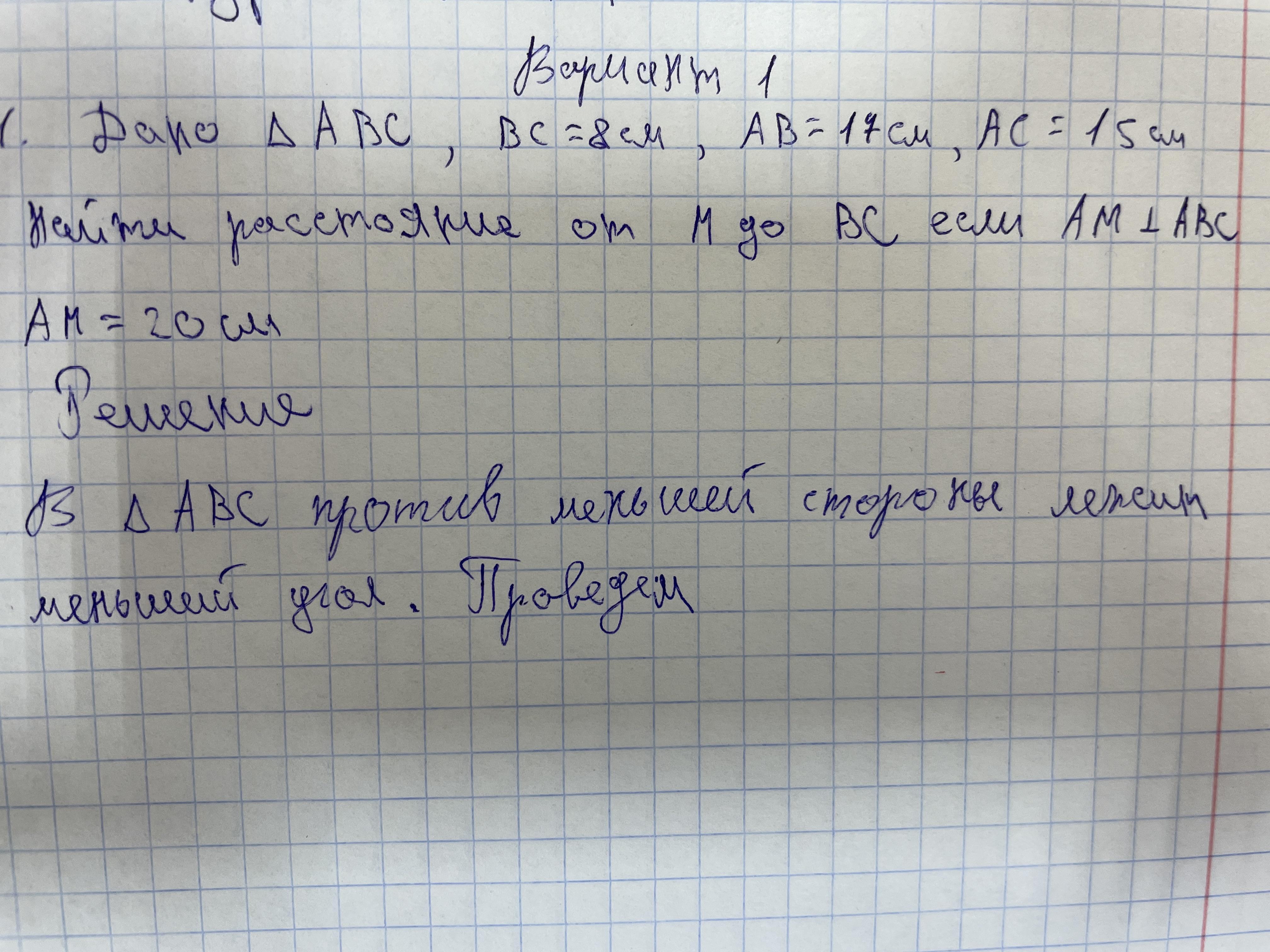 МН является расстоянием от М до ВС , AH - является проекцией МН на плоскость АВС