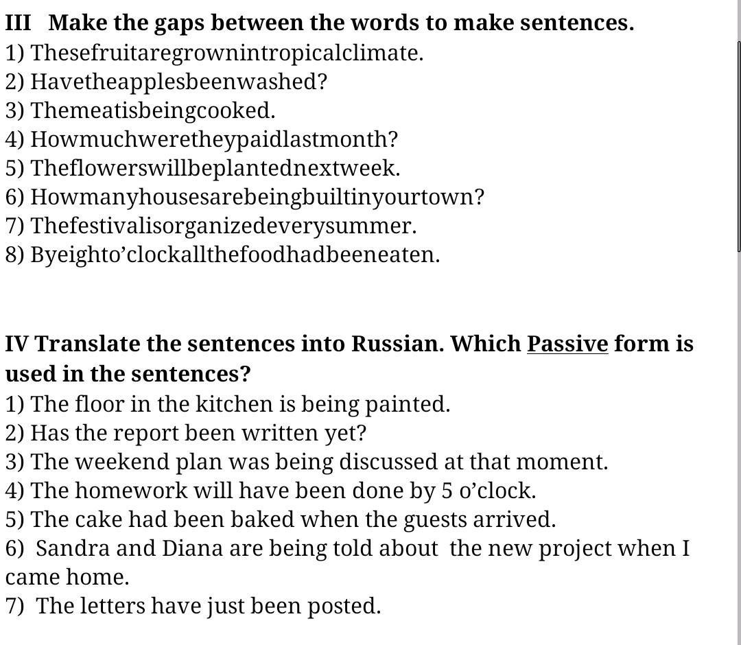 6. Сандра и Диане говорят о новом проекте, когда я пришла домой. - The Present Continuous Passive form is used.