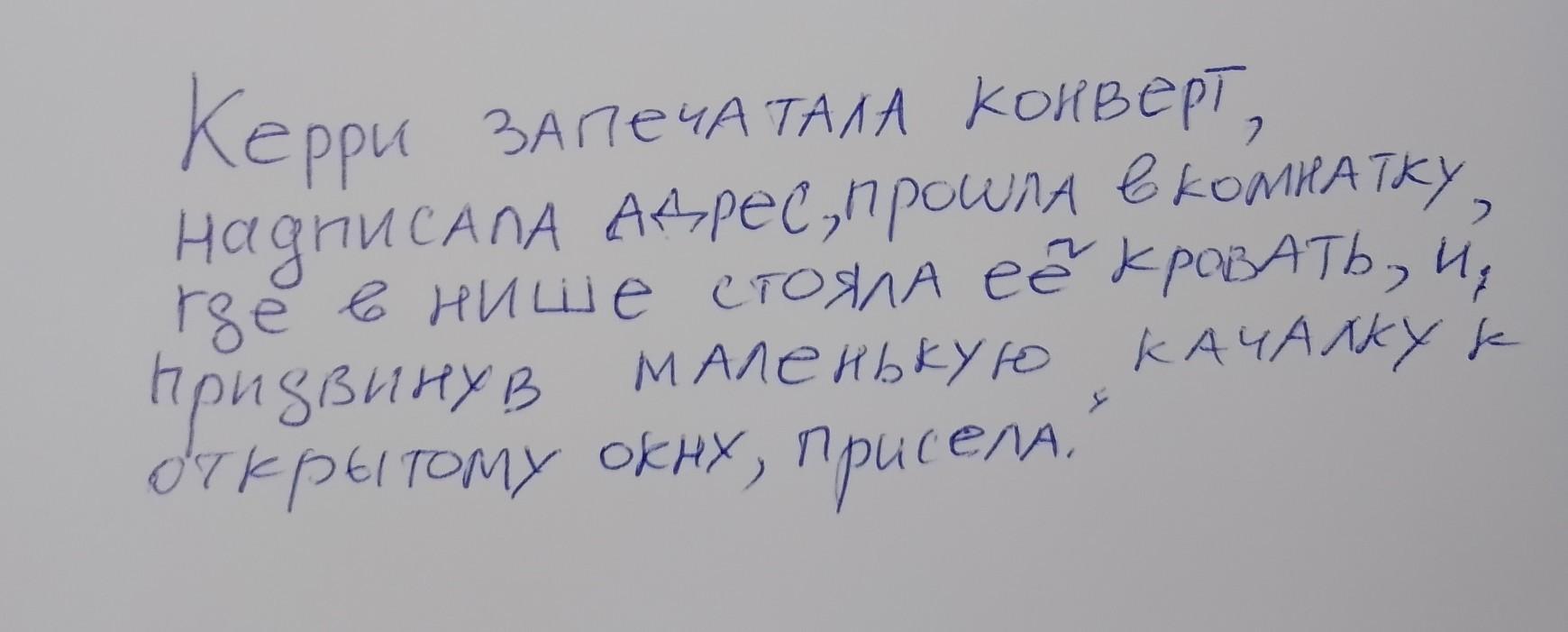[Керри запечатала конверт, надписала адрес, прошла в комнатку, (где в нише стояла её кровать), и, придвинув маленькую качалку к открытому окну, присела].