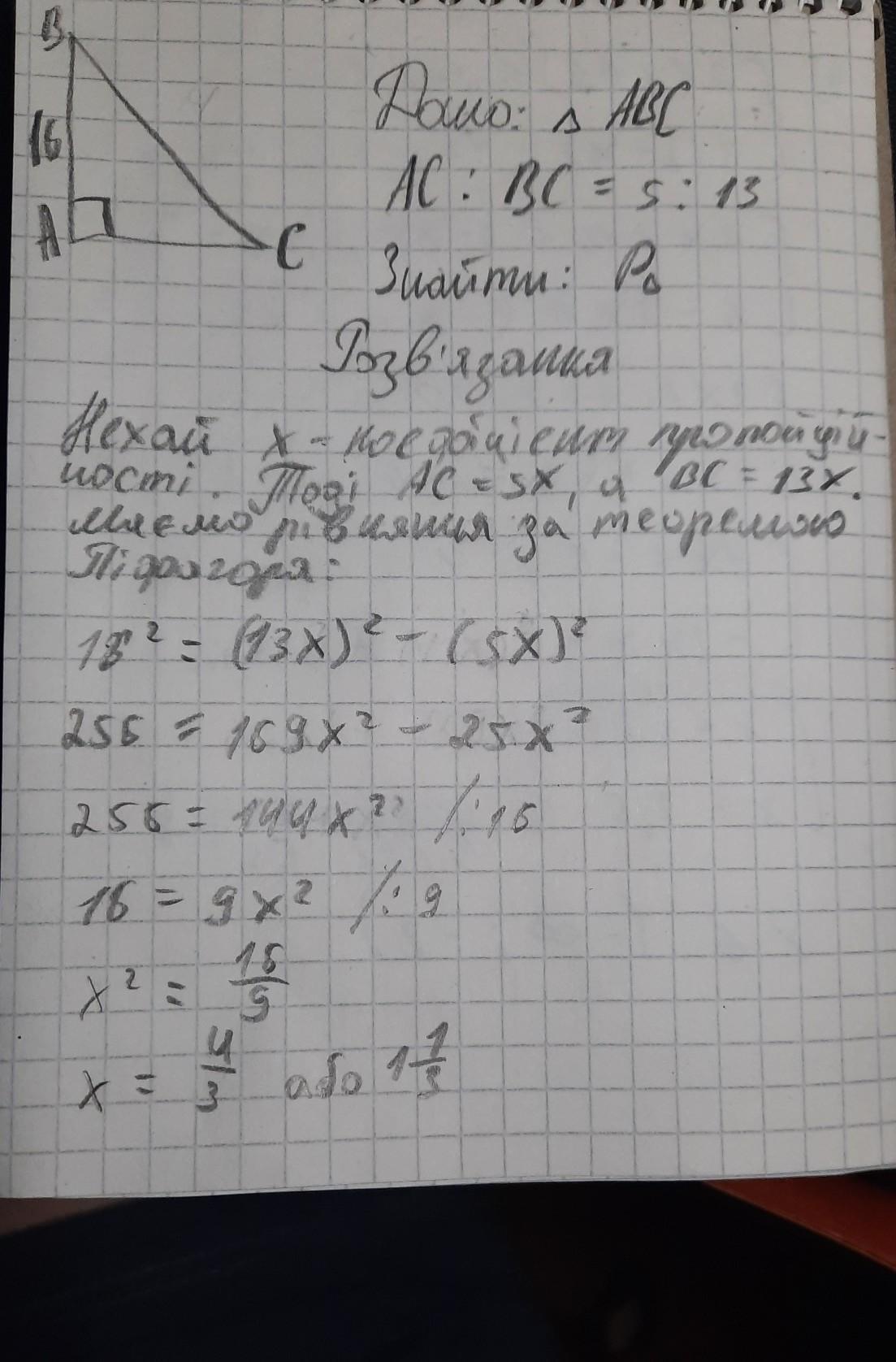 8. Знайти периметр прямокутного трикутника, один катет якого 16см, а