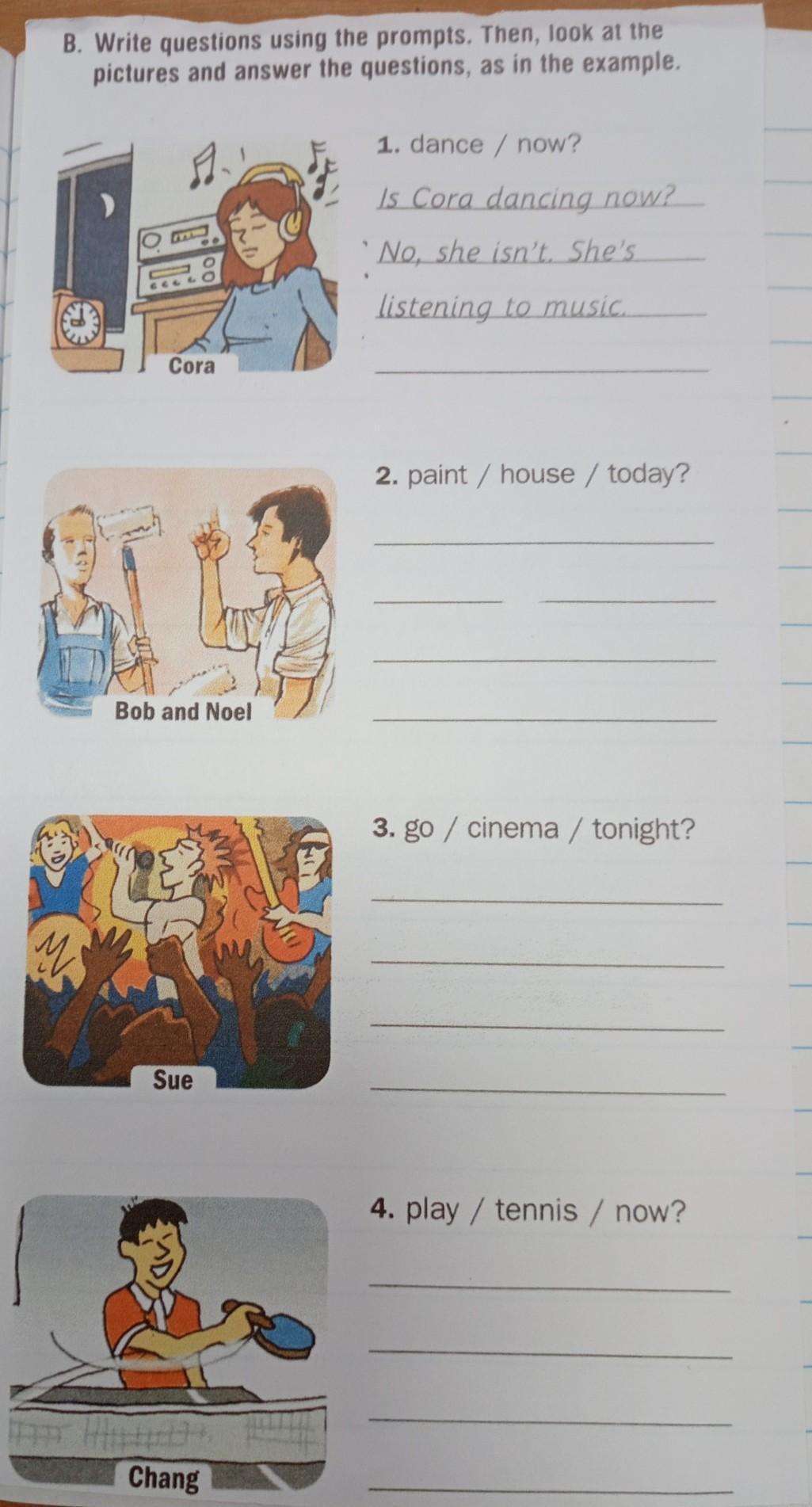 8. Write questions using the prompts. Then, look at the pictures and answer the questions, as in the example.