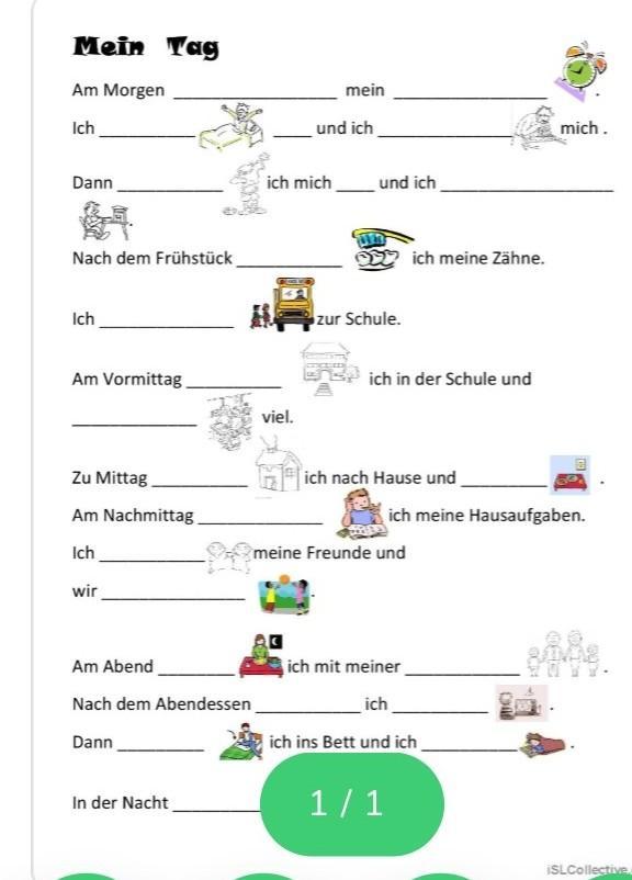 Am Nachmittag mache ich meine Hausaufgaben. Ich treffe meine Freunde und wir spielen.