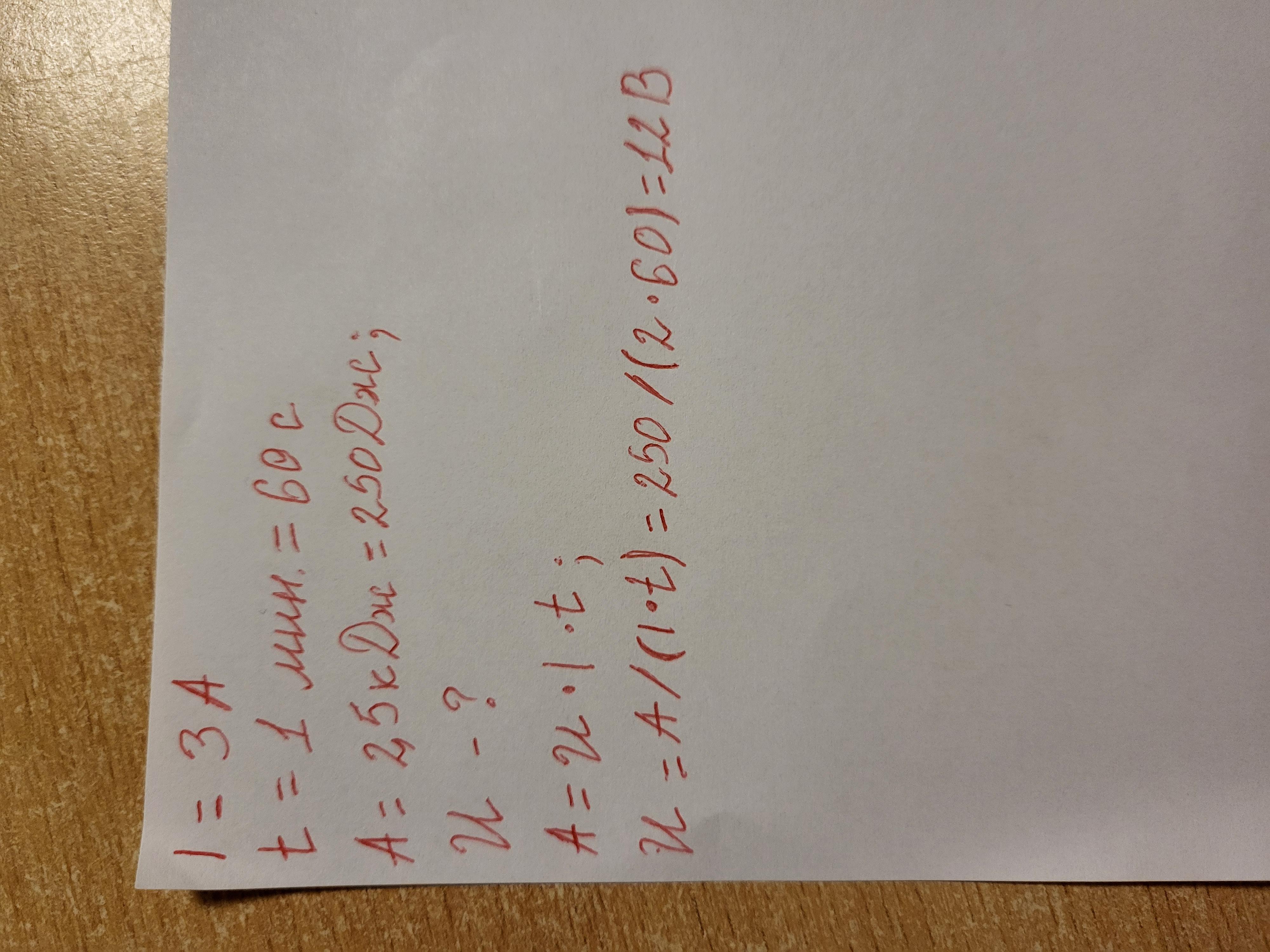 Сила струму в лампі розжарення дорівнює 3 А. За якої напруги працює лампа, якщо протягом 1 хв електричне поле виконує роботу 2,5 Дж?СРОЧНО ПЖ
