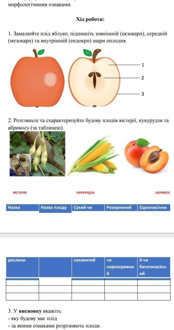 сухой:боб-горох сочные:зерновка-кукуруза и костянка-абрикос