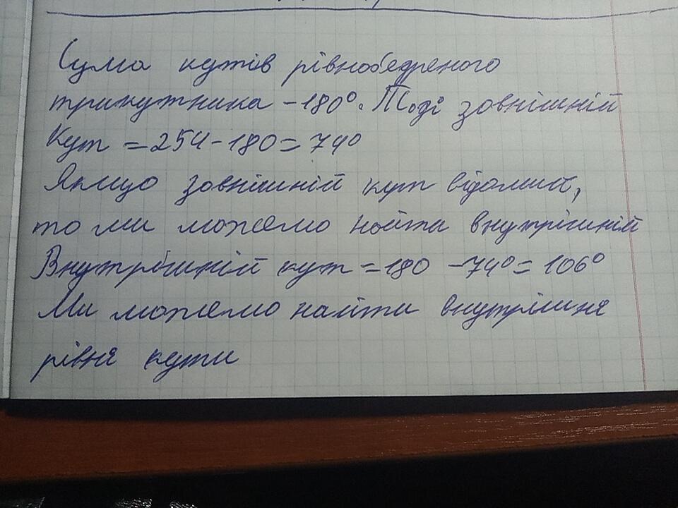 Якщо зовнішній кут відомий, то ми можемо найти внутрішній.