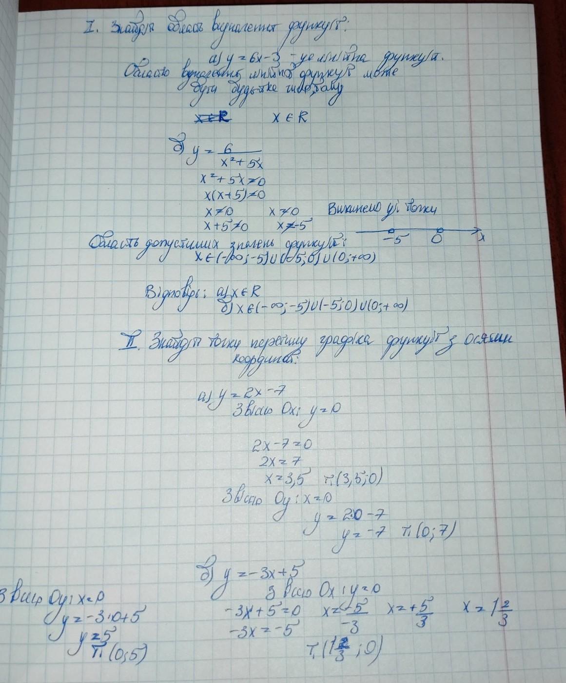 Знайдіть область визначення функціі у=6х-3; у=6/х2(степінь)+5х