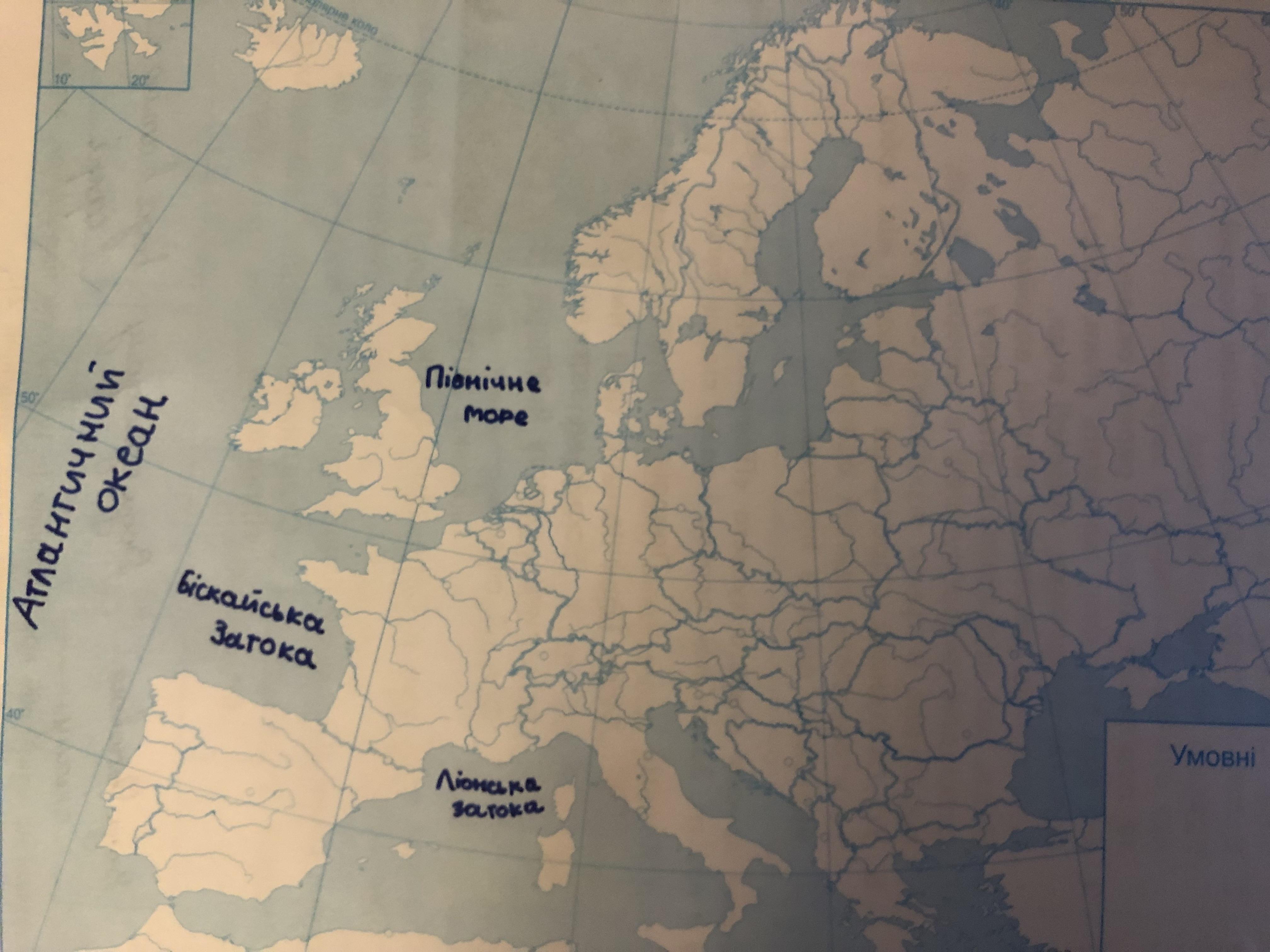 Підпиши на контурній карті Європи (с. 16) об'єкти гідросфери, згадані у приспіві «Пісеньки про Західну Європу» (див. завдання 2).