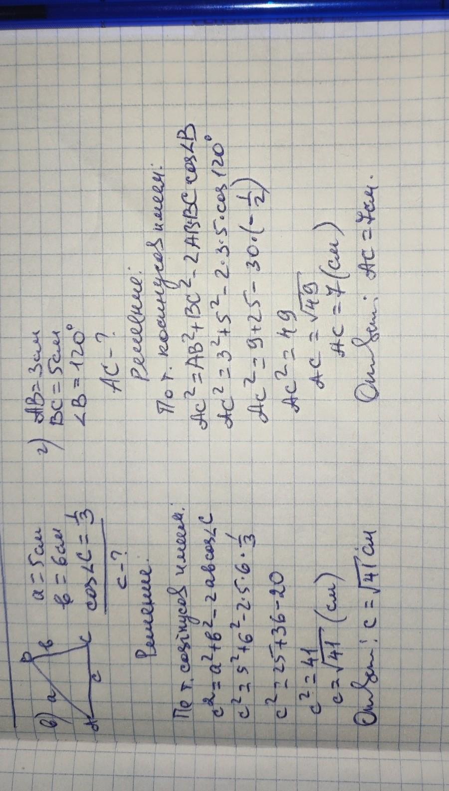 Дано трикутник ABC. Обчисли третю сторону якщо: