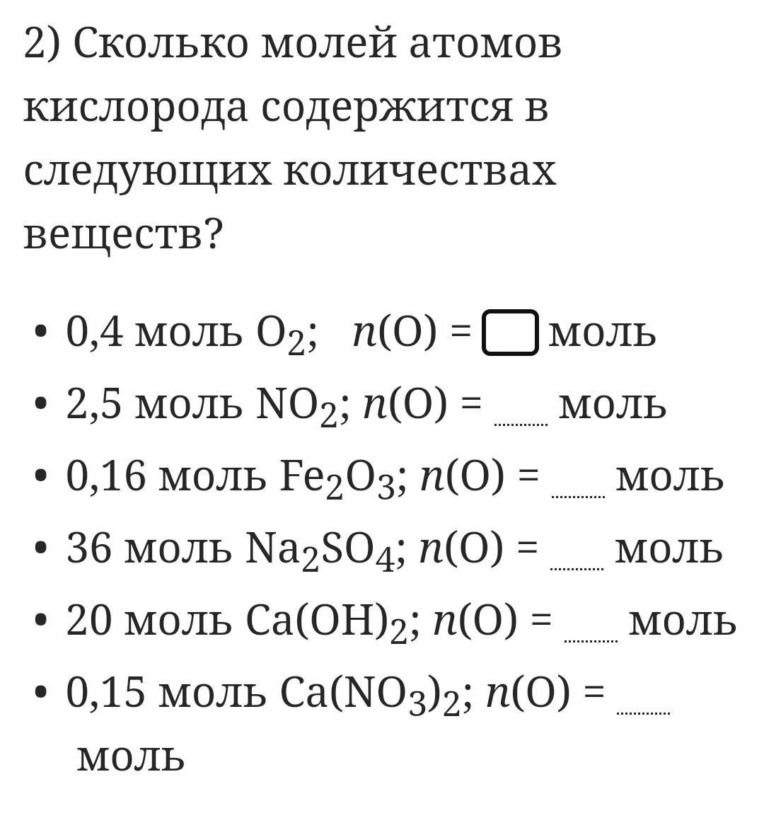 2,5моль NO2 n(O)=5мольмоль