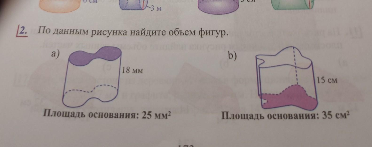 Чтобы найти объем данных фигур, надо площадь основания умножить на высоту:
