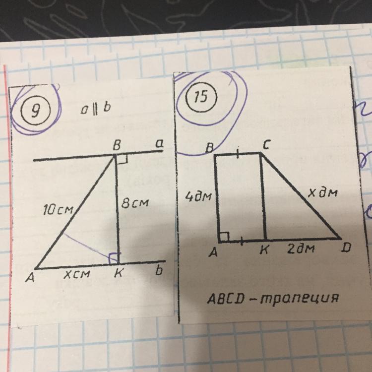 9) За наслідком з теореми Піфігора: АК² = 10²-8² = 100-64 = 36;