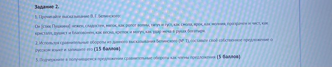 Используя сравнительные обороты из высказывания Белиннского, составьте свое собственное выражение о русском языке и запишите его. Подчеркните сравнительные обороты как члены предложения.