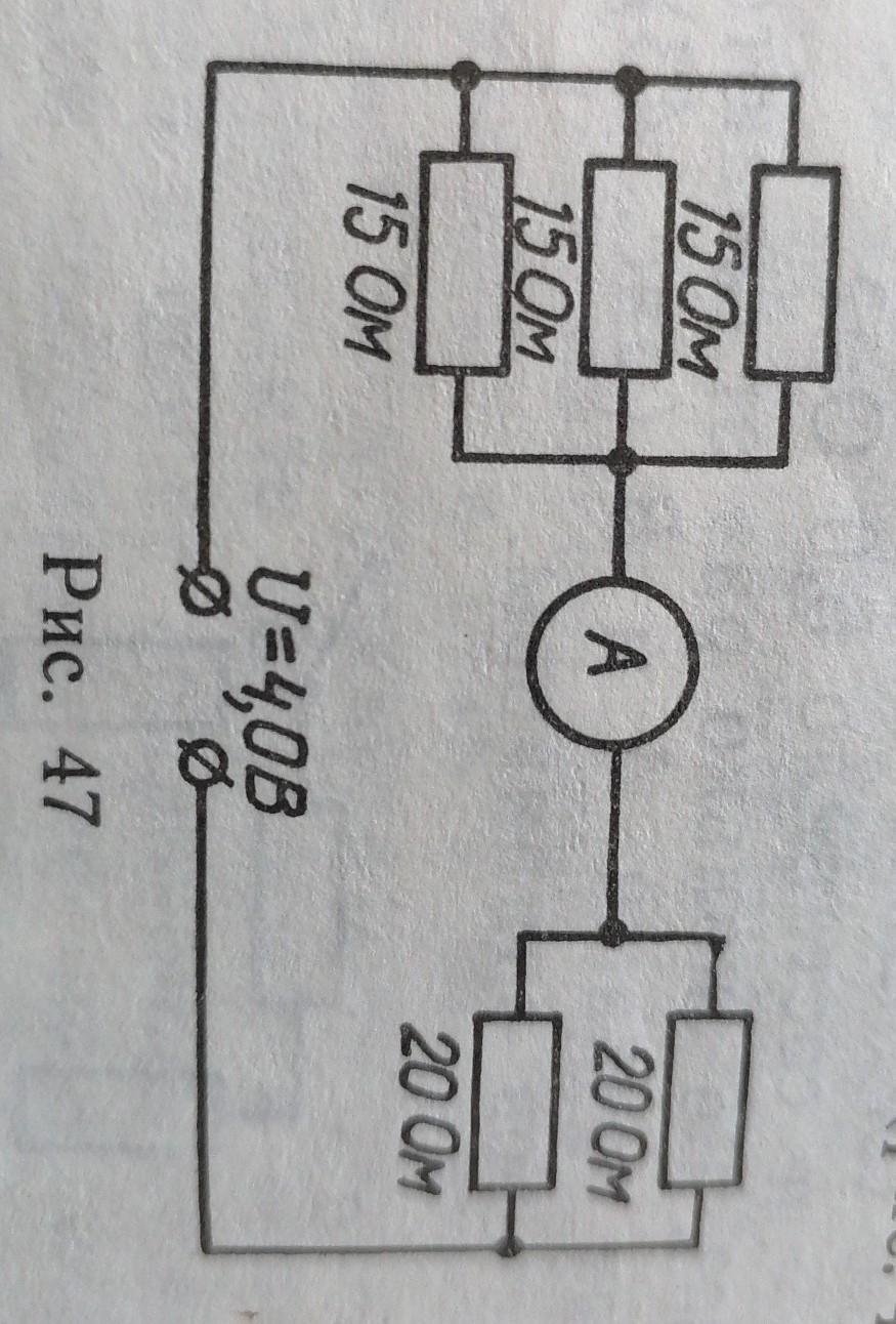 Использую данные схемы (рис. 47), определите показания амперметра.
