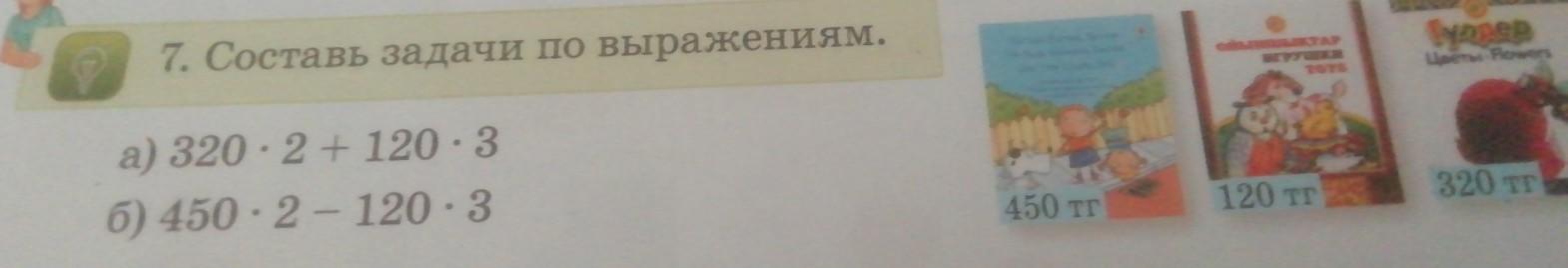 7. Составь задачи по выражениям. a) 320 - 2 + 120 - 3 6) 450 2-120-3 * 450 тг 120 тг Cregga 320 T дам 50фишек только без рофла!