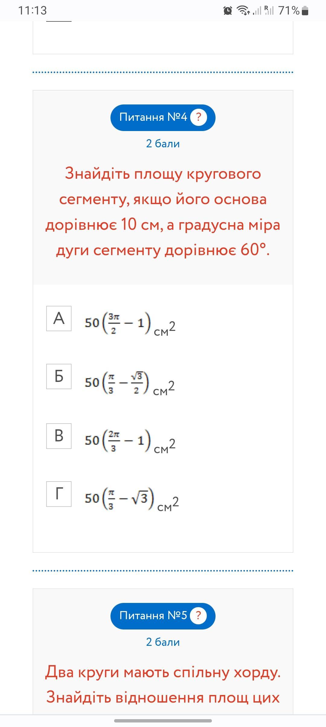 Знайдіть площу кругового сегменту, якщо його основа дорівнює 10 см, а градусна міра дуги сегменту дорівнює 60°.