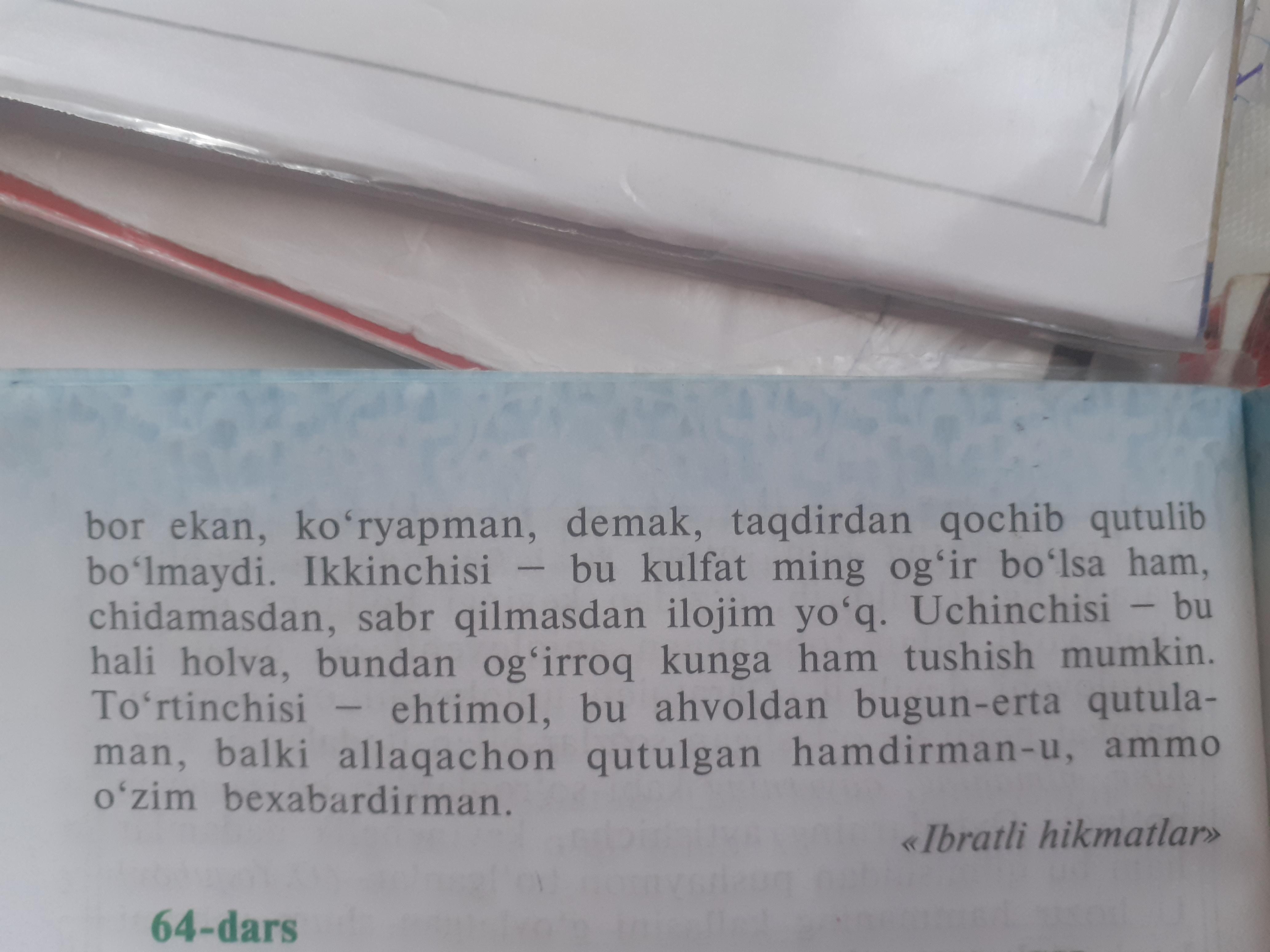Vatan otsonadan boshlanadi.Har bir inson o'z Vatanini asrab avaylamog'i lozim.Vatanini asrab avaylash uchun o'z uyini avvalo asrab himoya qilishi lozim.Agar inson o'z uyini asray olmas ekan demak u o'z vatanini ham asray olmaydi.
