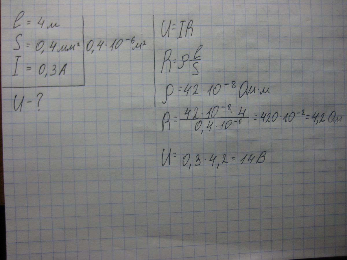 Никелированная проволка длиной 4 м и площадью поперечного сечения 0,4