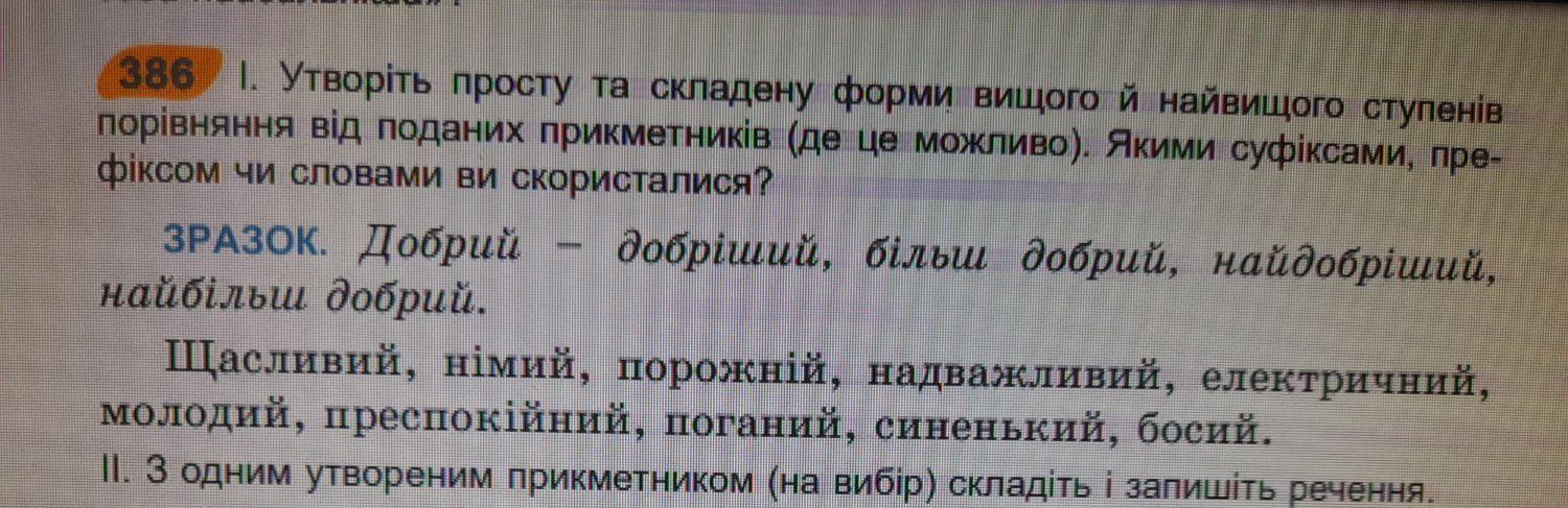 порівняння від поданих прикметників (де це можливо). Якими суфіксами, префіксом чи словами ви скористалися?