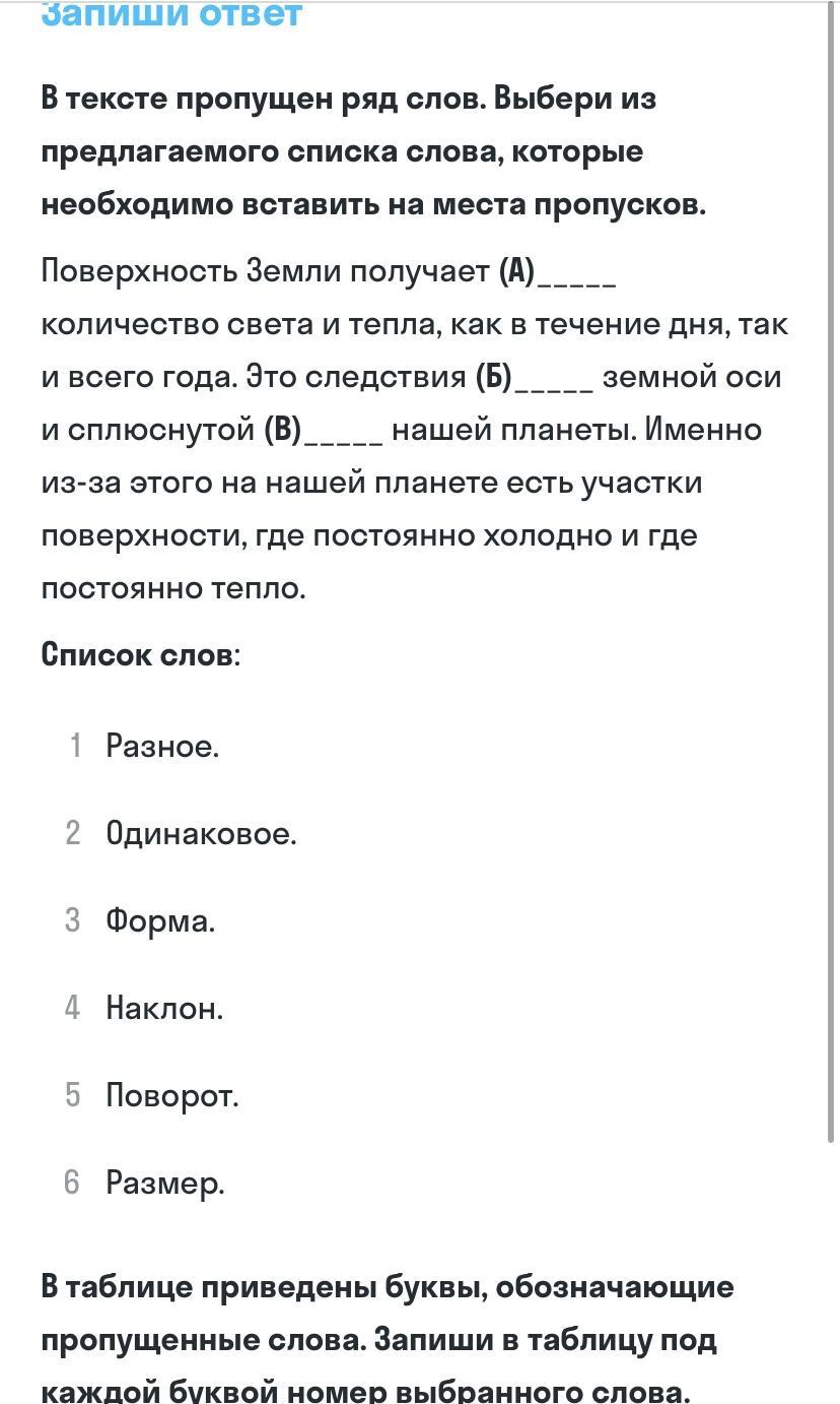 В тексте пропущен ряд слов. Выбери из предлагаемого списка слова, которы необходимо вставить на места пропусков.