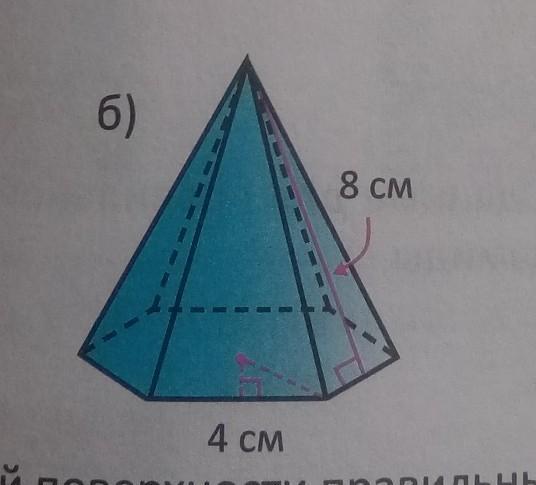 В данном случае сторона основы a = 4 см, а апофема r = 8 см. Так как пирамида правильная, то ее высота h равна (a / 2) * √3, где √3 - это корень из трех.