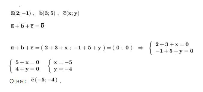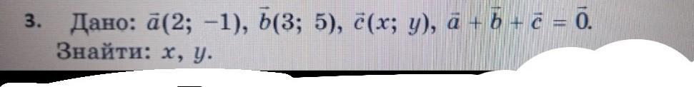 3. Дано: ā(2; -1), b(3; 5), č(x; y), a + b + c = 0. Знайти: x, у.