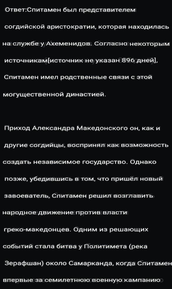 Согласно некоторым источникам источник не указан 896 дней], Спитамен имел родственные связи с этой могущественной династией.