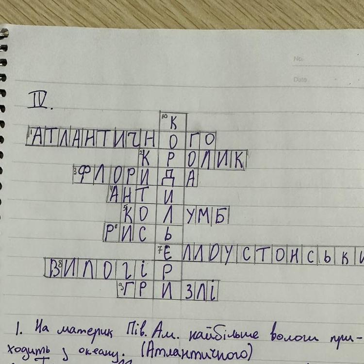 - Кросворд на тему «Північна Америка»: ключове слово «Кордильєри» дан нижче у додатку