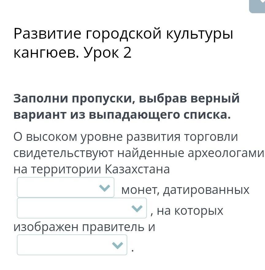 Развитие городской культуры кангюев. Урок 2 Заполни пропуски, выбрав верный вариант из выпадающего списка.
