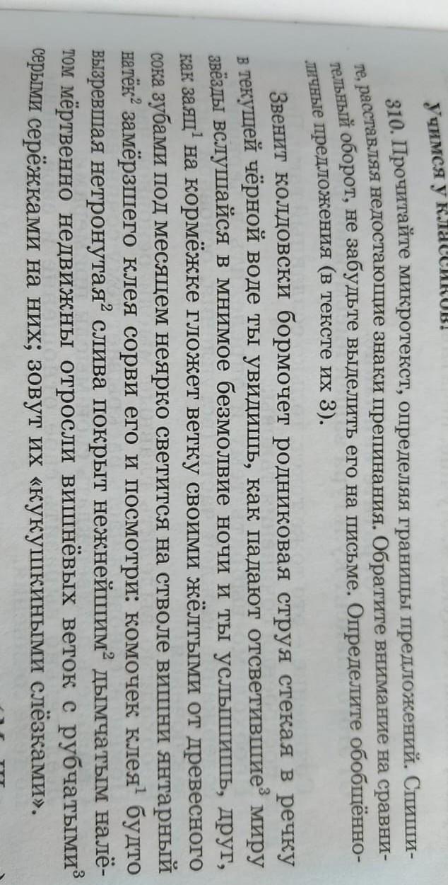 310. Определить границы предложений; расставить недостающие знаки препинания; выделить сравнительный оборот; определить односоставные (обобщённо-личные) предложения.