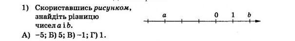 1) Скориставшись рисунком, знайдіть рiзницю чиселать. A) -5; Б) 5; B) -1; Г) 1. 1 + b