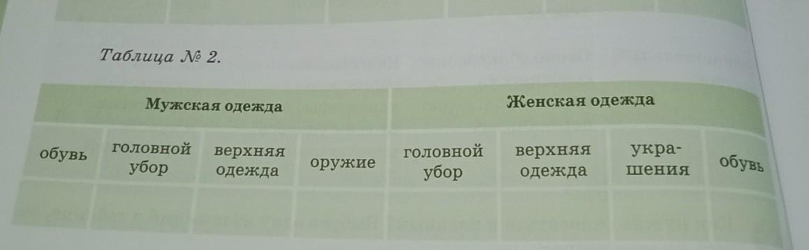 срочно сделайте таблицу по кавказскому пленнику 2,3, расписать вот так обувь-...