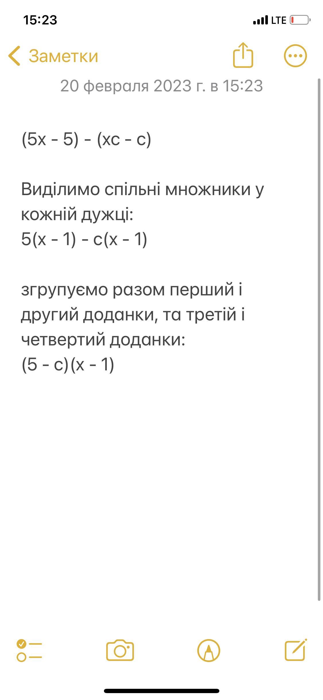 Отже, вираз 5x - xc - 5 + c можна розкласти на множники: (5 - c)(x - 1).