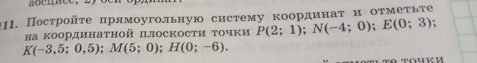 1111. Постройте прямоугольную систему координат и отметьте на координатной плоскости точки P(2; 1): N(-4; 0); E(0; 3); K(-3,5; 0,5); M(5; 0); H(0;-6).