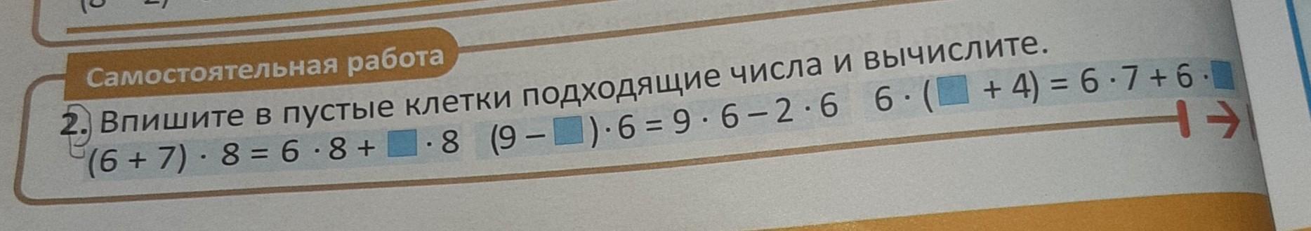 Самостоятельная работа 2. Впишите в пустые клетки подходящие числа и вычислите.