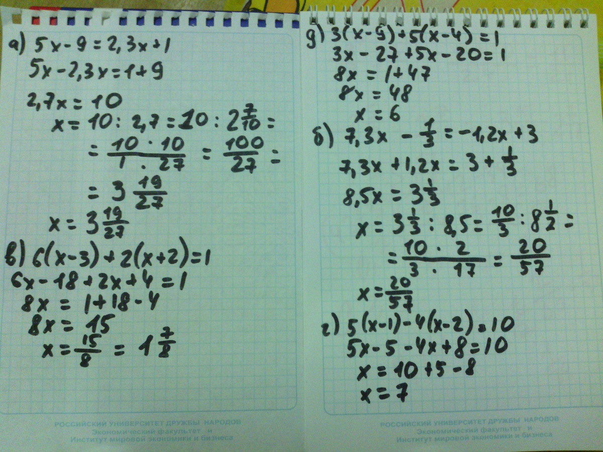 5х-2,3х=1=9 3(х-9)+5(х-4)=1 3х-27+5х-20=1 3х+5х=11+20+27,8х=48,х=6