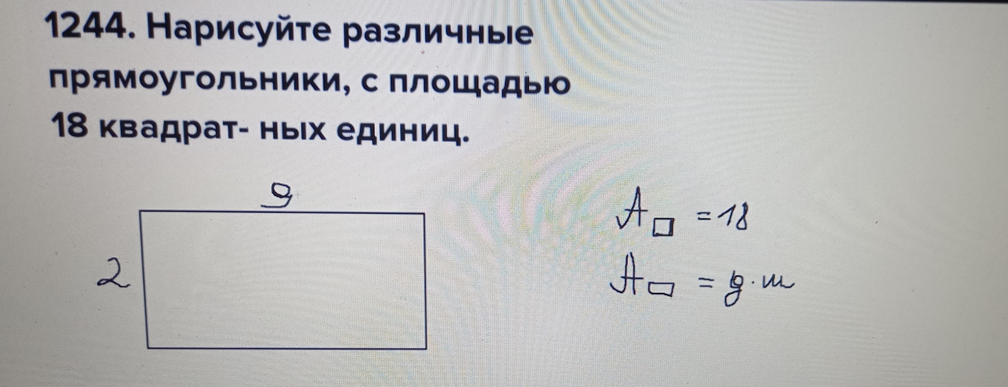 1244. Нарисуйте различные прямоугольники, с площадью 18 квадрат- ных единиц.