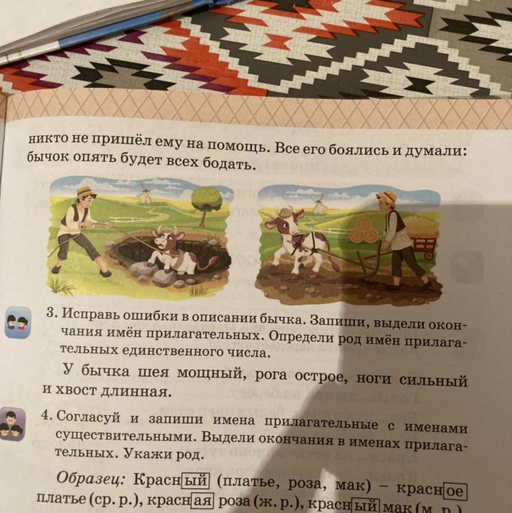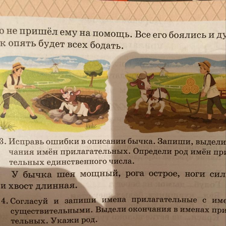 Исправь ошибки в описании бычка. Запиши, выдели окончания имён прилагательных. Определи род имён прилагательных единственного числа.