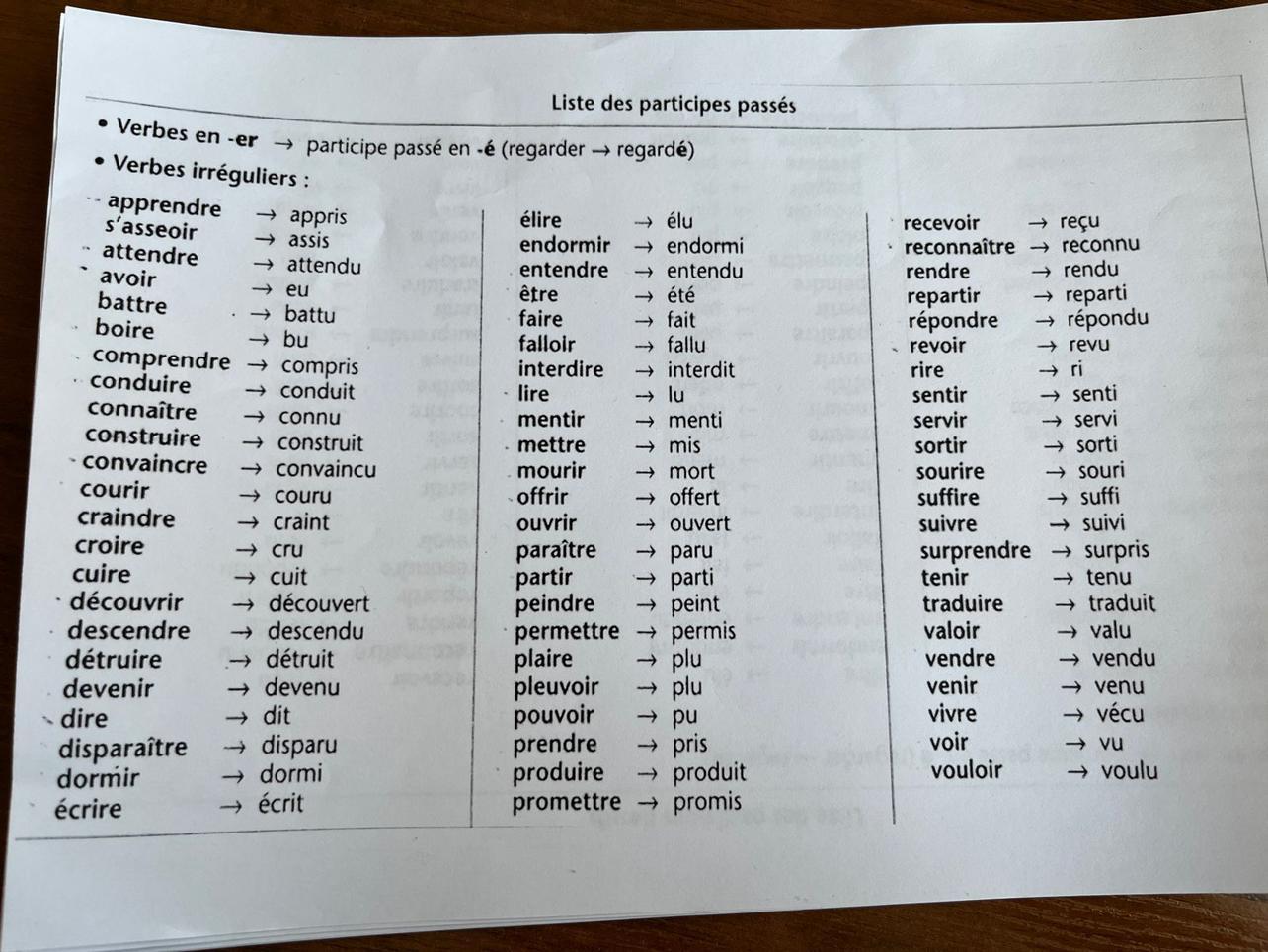 • Verbes en -er → participe passé en -é (regarder → regardé)
