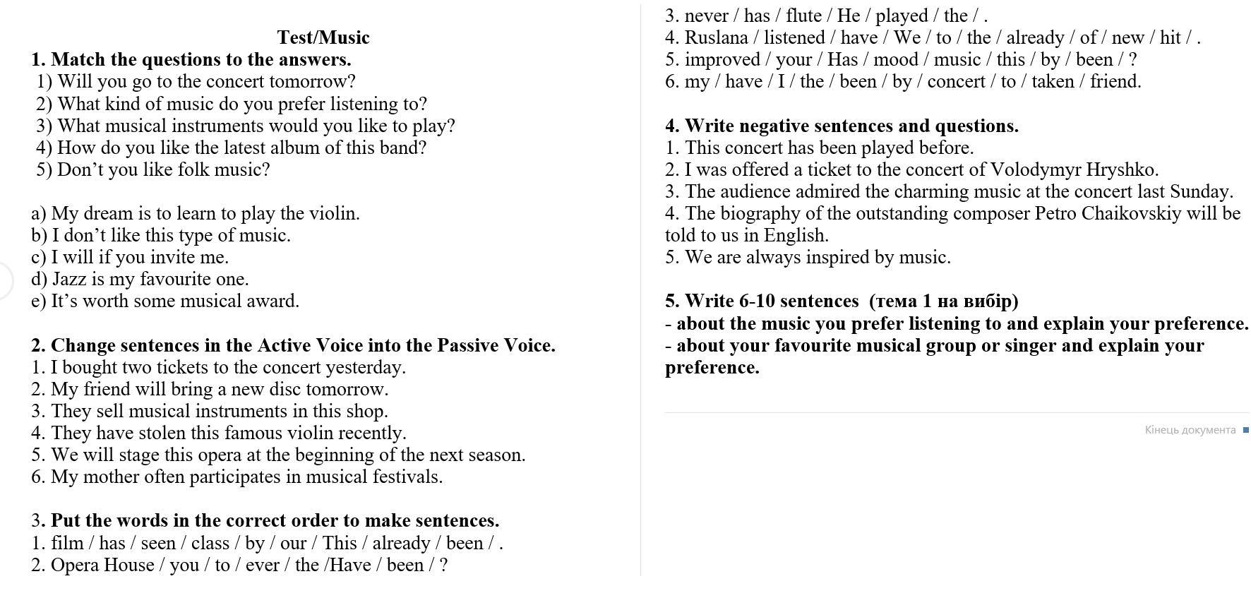 2.1.Two tickets to the concert were bought by me yesterday.